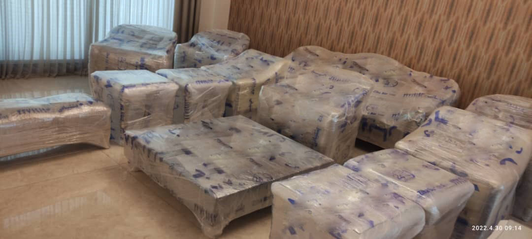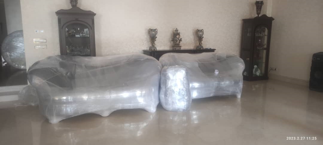 بستهبندی مبلمان و لوازم بزرگ: استفاده از روکشهای مخصوص ضد خش و ضربهگیر برای محافظت از مبلمان، یخچال، تلویزیون و سایر لوازم بزرگ.